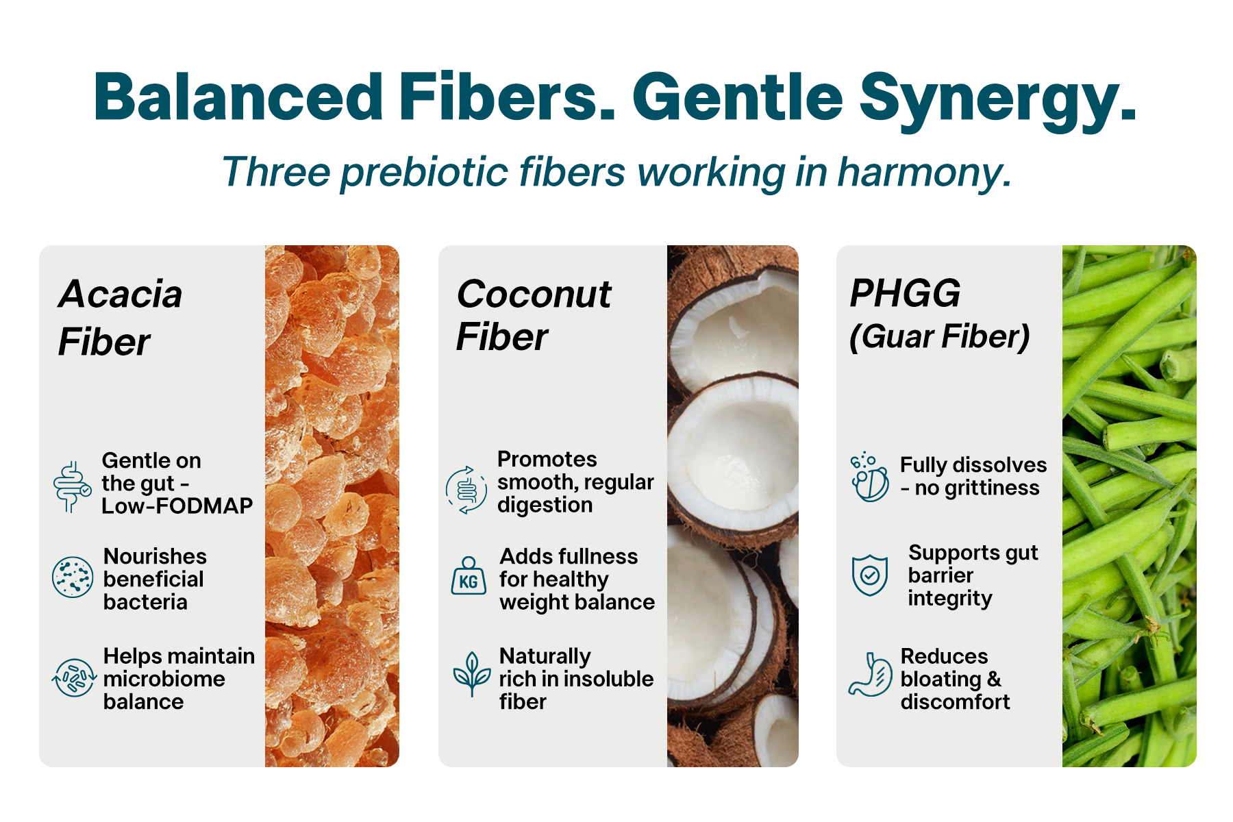 Daily prebiotic fiber powder for smoother digestion, regular stools & less bloating.