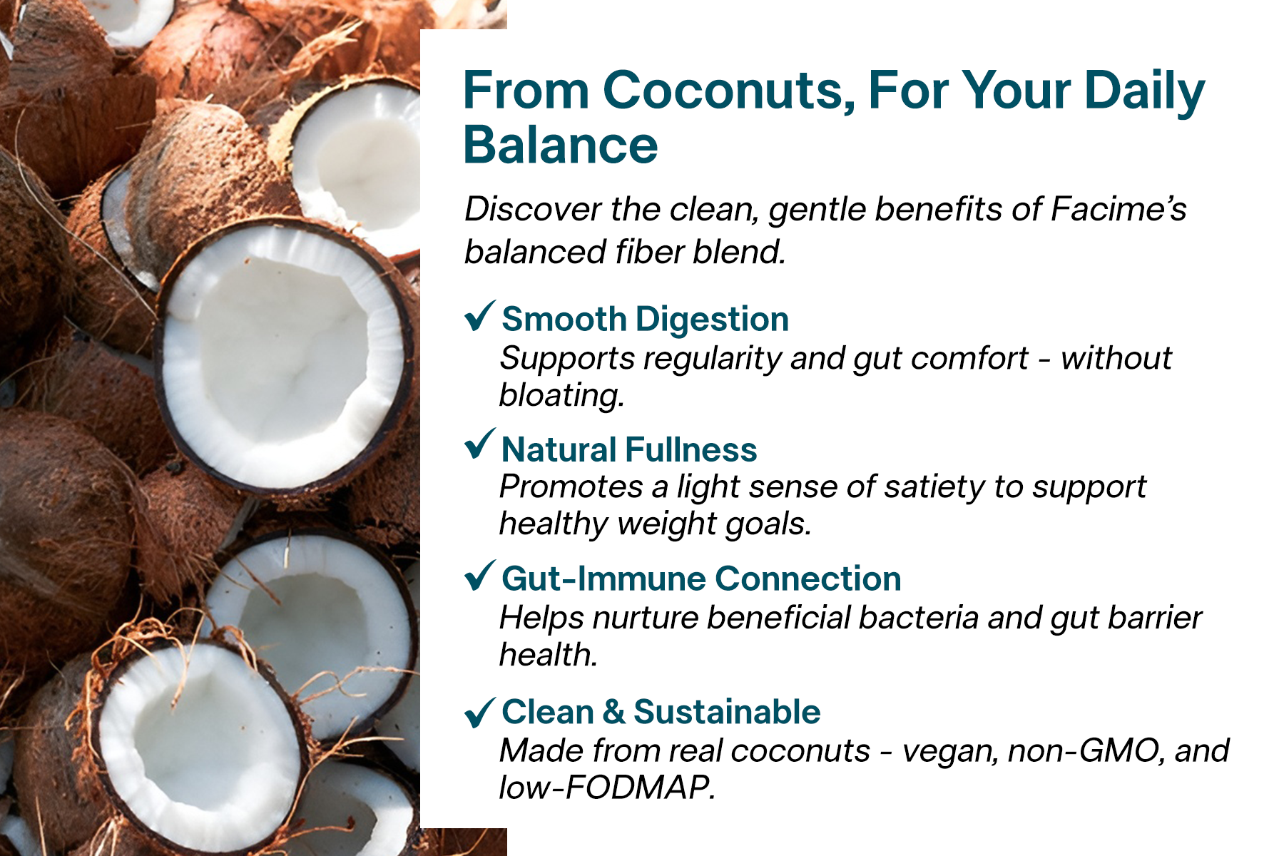 Coconut, acacia & PHGG; unflavored, no sugar or artificials